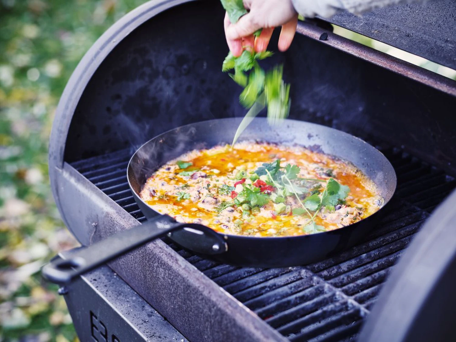 Stap 5. Zodra de olie begint te roken, neem je deze af met een flinke prop keukenpapier. Herhaal dit proces een aantal keer. De pan verkleurt, dit is een goed teken. Dit proces zorgt voor de natuurlijk antiaanbaklaag in de pan!