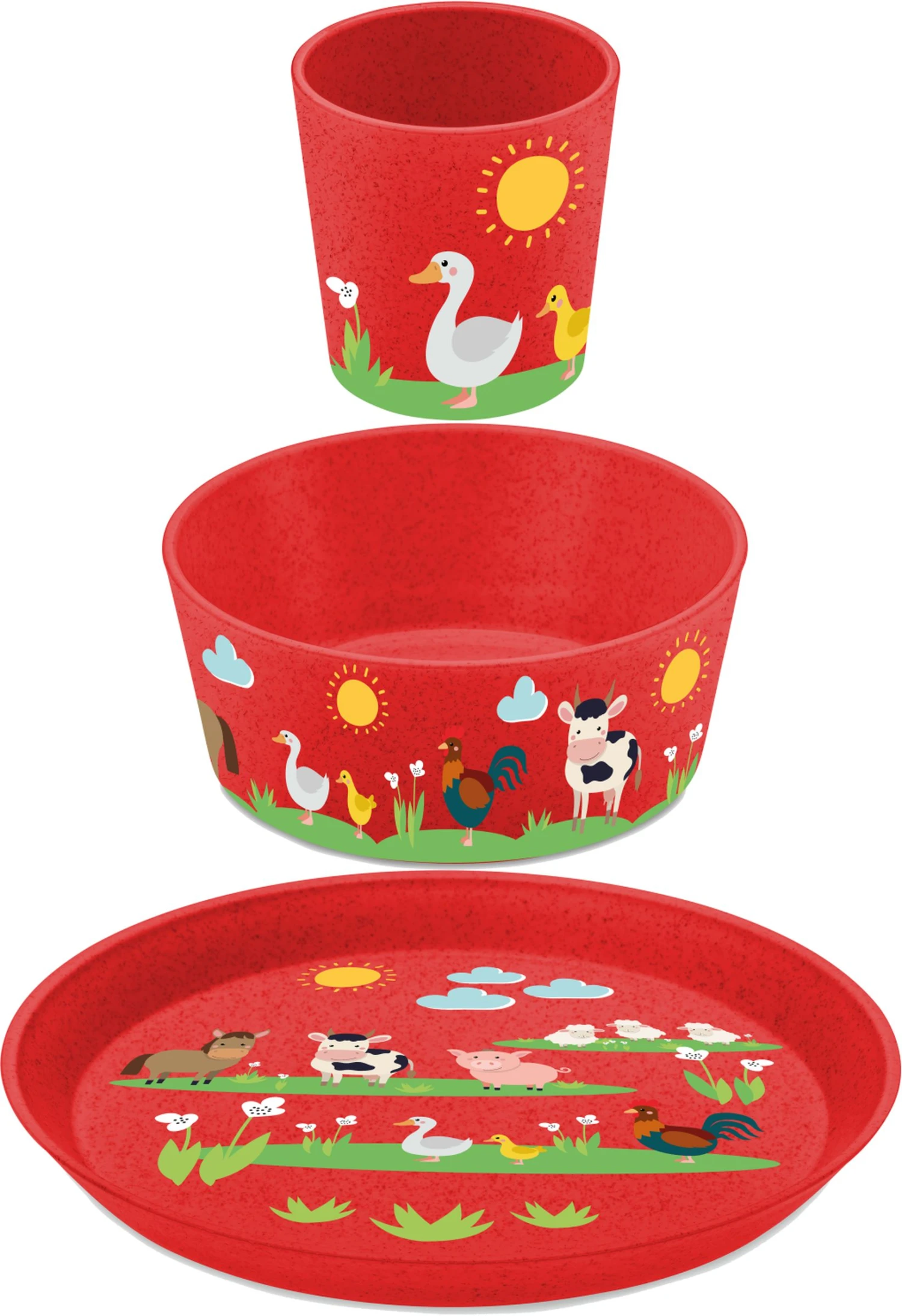 Het Koziol Kinderservies Connect Farm 3-Delig is origineel en compleet. Dit kinderservies is gemaakt van duurzaam kunststof en kan zowel binnen als buiten gebruikt worden. In de set zit een beker 190 ml, een kleine kom 400 ml en een ontbijtbord ø 20,5 cm. De set kan veilig in de vaatwasser, want de print kan er niet afslijten.