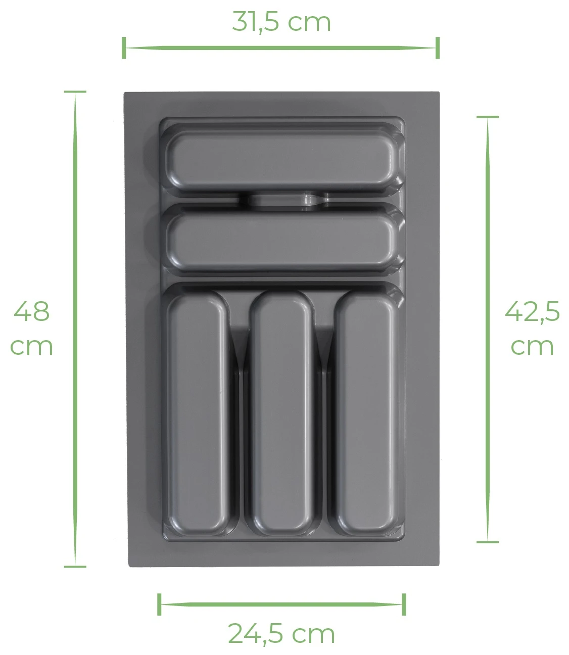 Deze Cookinglife bestekbak is gemaakt van kunststof, hierdoor is het mogelijk om de randen van de bestekbak op maat van jouw bestekla te snijden! Met een liniaal en afbreekmes kun je de diepte tussen de 48 centimeter en 42.5 centimeter snijden. De breedte kan je verkleinen tussen de 31.5 centimeter en de 24.5 centimeter. Op deze manier past de bestekbak zonder problemen in iedere lade.