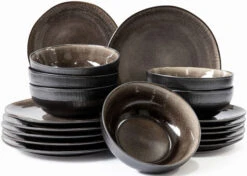 Stoer maar toch rustig servies? Dan is deze serviesset van Cookinglife perfect voor jou! De donkerbruine kleur zal je gerechten laten schitteren op de borden. Let wel op: de binnenkant van het servies is nooit helemaal gelijk, dit maakt elk product in de collectie uniek. Het zijn kleine verschillen, waardoor de onderdelen alsnog perfect bij elkaar passen. Vul de serviesset aan met de mokken of koffieset, of combineer het juist met de andere kleuren van het Cookinglife Servies. De set is geschikt voor 6 personen en bestaat uit: