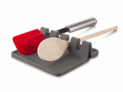 Op de Vacu VIn Lepelhouder kun je alle pollepels en ander keukengerei kwijt. De lepelhouder komt goed van pas tijdens het koken. Door de inhammen blijft het keukengerei stevig liggen. De lepelhouder vangt vooral de spetters op, die anders op het aanrecht waren gevallen. Ook is de lepelhouder geschikt voor in de vaatwasser en hittebestendig.