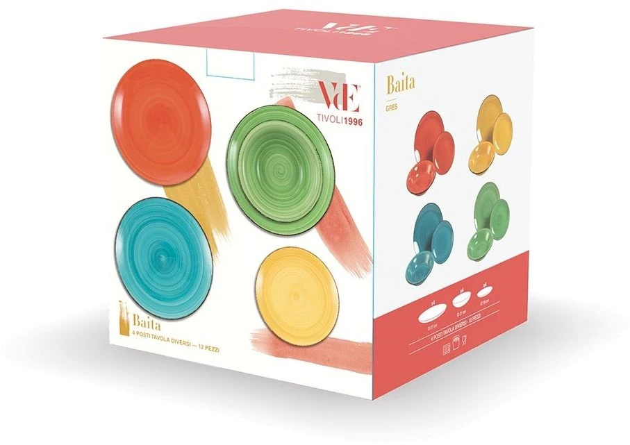 Met de Villa d’Este Serviesset Baita Intensita Doppia – 12-delig / 4 personen wordt het eten een feest! Deze serviesset bestaat namelijk uit Diverse kleuren, waardoor jij een vrolijke tafel dekt! Het servies is gemaakt van Aardewerk en is geschikt voor 4 personen. Daarnaast is het ook nog met de hand geschilderd, waardoor elk stuk uniek is! Na het gebruiken van de Villa d’Este Serviesset Baita Intensita Doppia – 12-delig / 4 personen kunnen deze eenvoudig worden gereinigd in de vaatwasser. De serviesset bestaat uit: