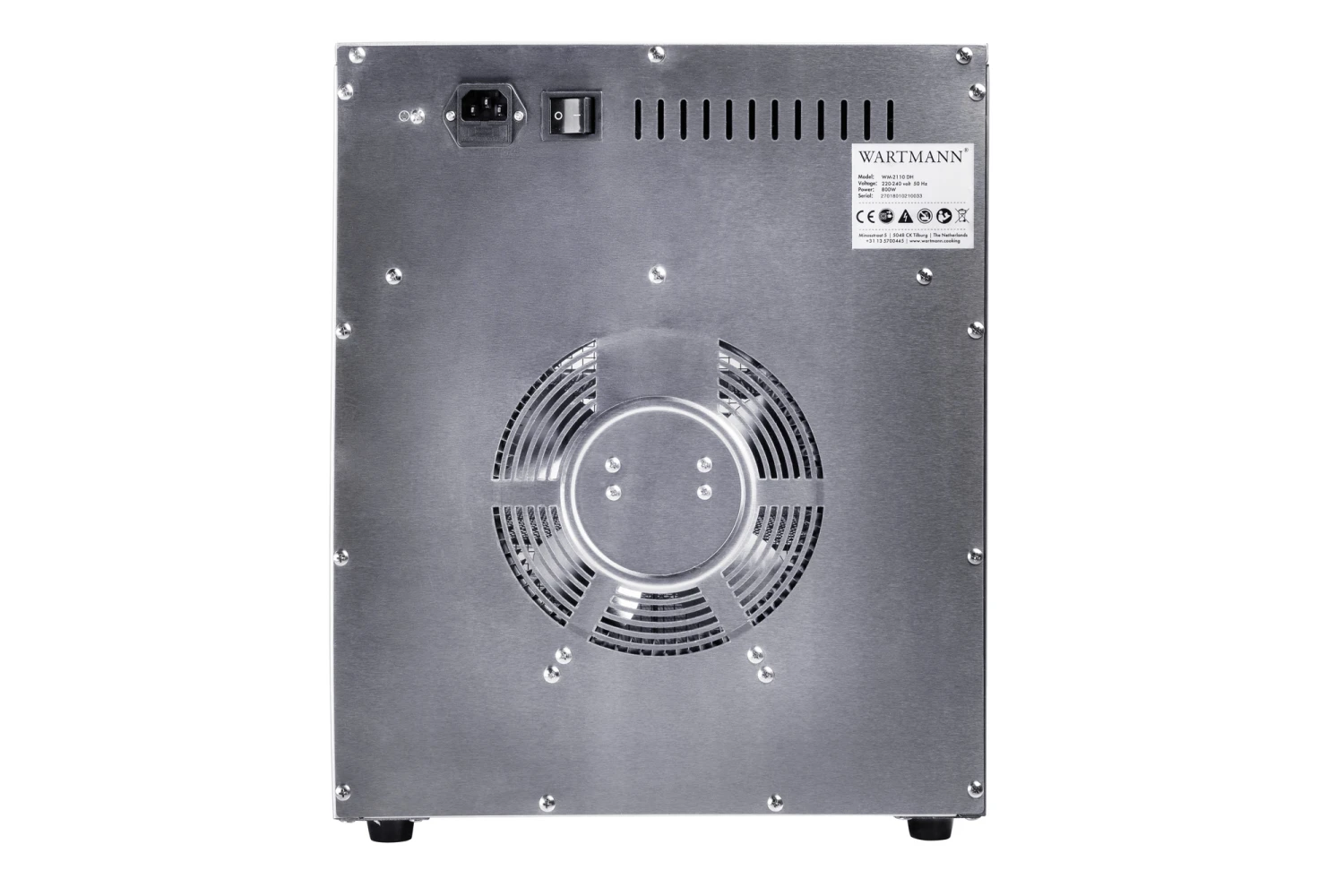 De voedseldroger droogt horizontaal over de laden en droogt gelijkmatig. Door het overzichtelijke bedieningspaneel kan je eenvoudig de gewenste tijd en temperatuur instellen. De temperatuur is instelbaar van 35 tot 80 graden Celsius en de tijdklok is instelbaar van 30 minuten tot 72 uur. De Wartmann Voedseldroger – 10 Laags wordt geleverd met 10 droogroosters en een druipplaat.