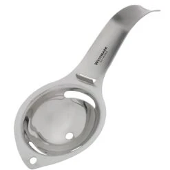 Met de Westmark eierscheider kun je makkelijk de dooier van het ei scheiden. De Westmark eierscheider heeft een handige bocht waardoor hij perfect past op bekers en kleine kommen. Daarnaast heeft de Westmark eierscheider een ei-breekhulpstuk. De Westmark eierscheider is gemaakt van roestvrij staal en je kunt hem na gebruik gewoon in de vaatwasser reinigen.